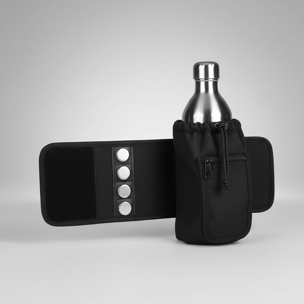Experience the ultimate innovation in fitness with a unique pouch that combines magnetic technology and practical design, ensuring that hydration and essentials are always within reach, allowing for a focused and effective workout.